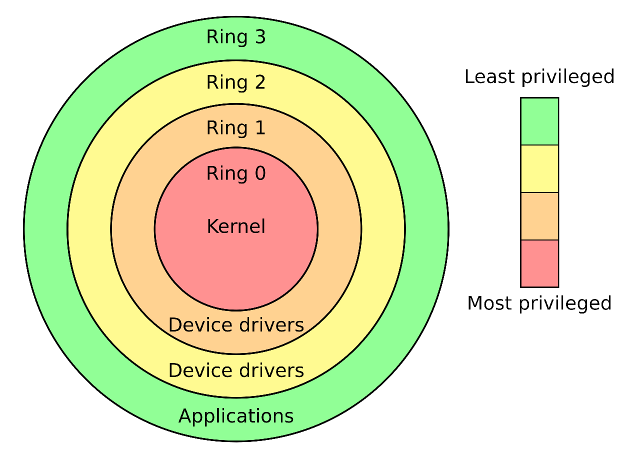 I’m including a reference to this model for posterity since you’re sure to encounter it, but to be frank I don’t think it has too much value in malware development, other than communicating that yes - kernel has highest privilege, while user mode has the lowest. For our purposes, the layered model provides, in my opinion, much more conceptual value.